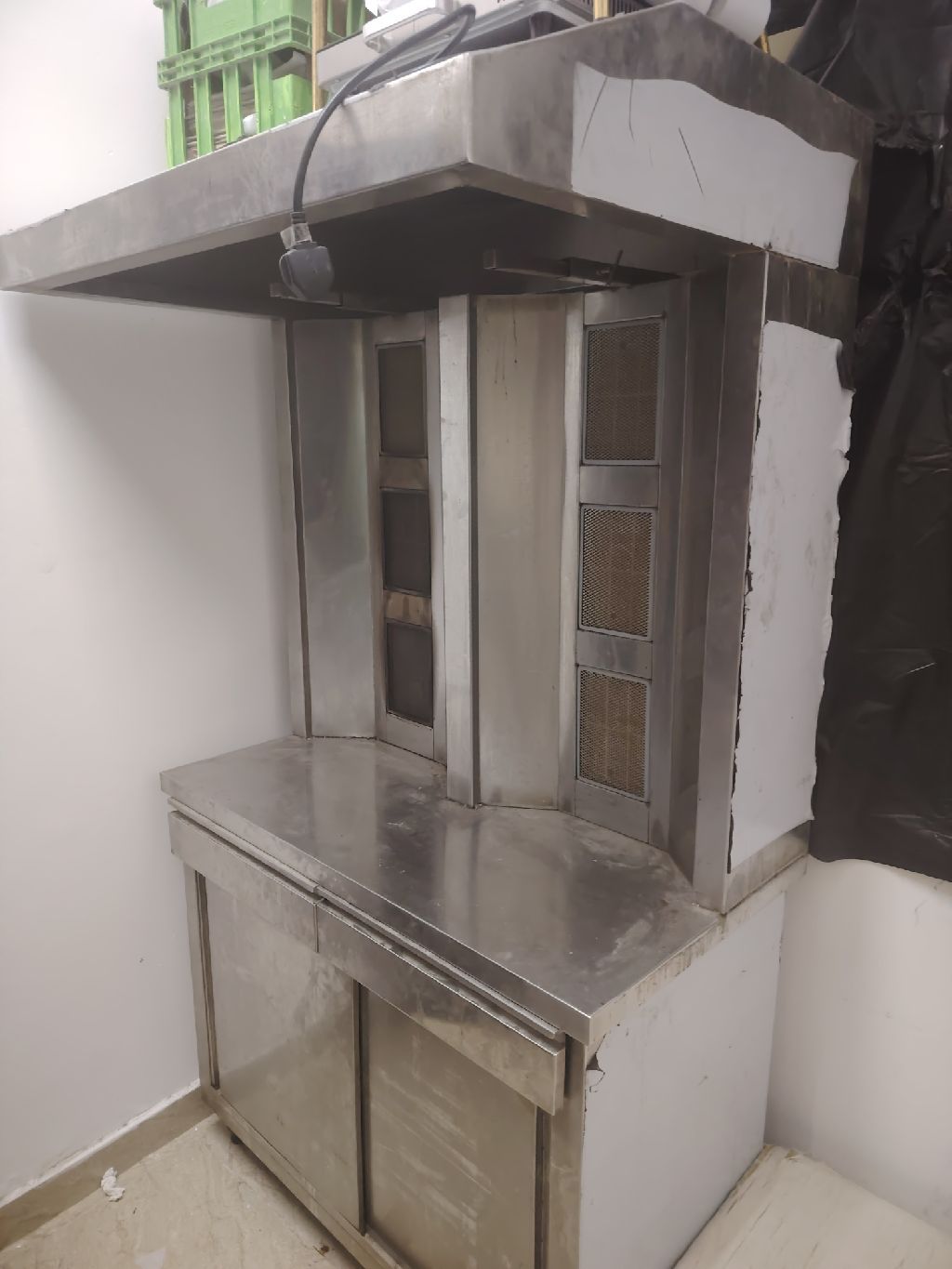يوجد ماكينة شاورما بروحين بي خزانه استعمال خفيف ويوجد مغسلة كبيرة استالس وجهاز تسخين طعام أبو ظبي التواصل للجدين