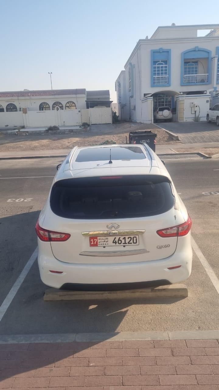 Infiniti QX60 GCC model 2014 with 208,000 km mileage. 6-cylinder engine, ownership valid until February 2026. Second owner, family car used by a lady, regular maintenance. Car location: Abu Dhabi. Price: 42,000 AED. Contact number available.