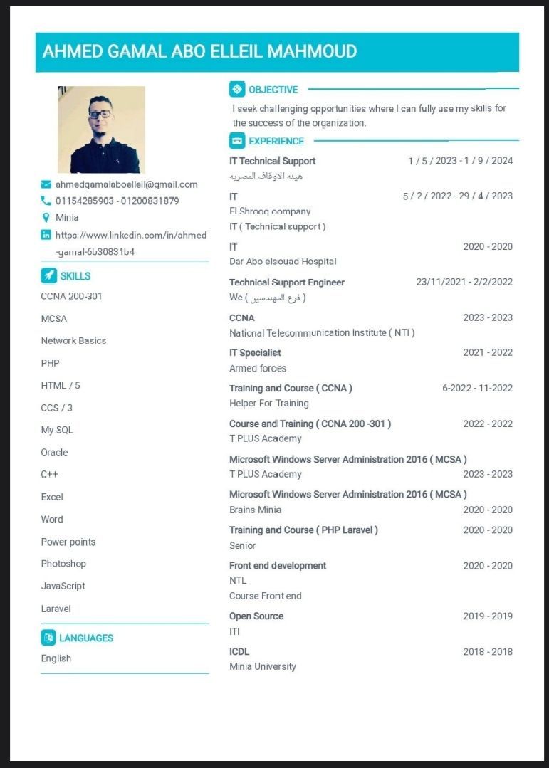 أنا مهندس IT (دعم فني) خبرة 4 سنين، معي كورسات CCNA, MCSA, Firewall (forti) ابحث عن عمل