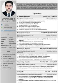 IT support/ Software Engineer Available in Dubai, I am a qualified Software Engineer and IT support Specialist with hands - on experience in system troubleshooting, network configuration, and front - end development. Skilled in Windows installation, user support, networking (CCNA Certified) web development (HTML, CSS, JavaScript, Bootstrap) and IT infrastructure services. Education Bachelor’s in Software