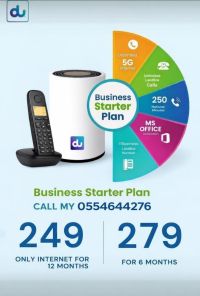 Happy New year 2026, Du new Internet for office with 30a discount for first 6 months then 399. Unlimited full speed internet with unlimited landline calls and 250 mobile minutes. Please contact now