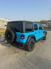 For sale: Jeep Wrangler, very clean, model 2021, mileage 82,000 km, blue color, automatic transmission, 4WD drive, excellent condition, private use - sophisticated usage, regular maintenance, ready for inspection, with comprehensive annual insurance. Additional features: navigation system, rear camera, sensors, cruise control, remote start, strong air conditioning, original wheels.