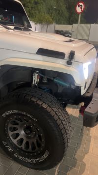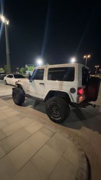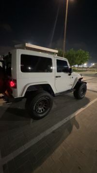 GCC Jeep Wrangler 2013 with 184,000 km only. Features include: new battery, new ownership, new full insurance, 2024 tires, and new service completed. Additional upgrades: King 2.5 suspension, full Borla exhaust system, Yokohama tires year 2024 315/70/R17 (5 pieces), Fuel rims, blue interior, Rough Country steering stabilizer, Android screen, front Rubicon bumper, and rear aluminum bumper.