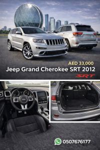 For sale: Jeep Grand Cherokee SRT 2012, in good condition with maintenance from Al Gharbiya Automotive Agency. Contact for details. Price: 33,000 AED.