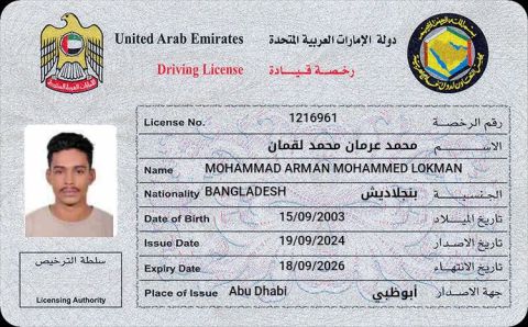 Mohammad arman I am from Bangladesh I living Abu Dhabi I have driving licenses in UAE 1 year experience