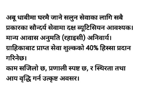 مطلوب فنية تجميل شاملة للعمل في خدمات الصالون المنزلية في أبوظبي المركزية شارع خليفة ابن زايد الأول. يشترط أن تكون لديها إقامة سارية. نسبة العمل 40% من قيمة الخدمات المدفوعة من العميلة. العمل مريح والنظام واضح، وفرصة ممتازة للاستقرار وزيادة الدخل
