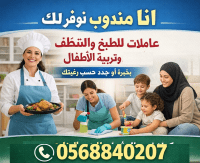 أنا مندوب موجود عندي عاملات طباخات والتنظيف وتربية الاطفال بخبرة أو جدد حسب رغبتك فل تايم بار تايم كما نوفر عمال شباب للعزب والمزارع والمقاولات ومغاسل السيارات وأعمال المساندة