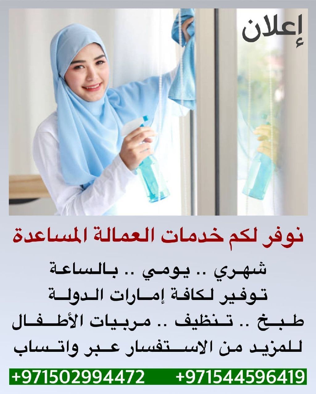 نوفر لكم عاملات منزليات سعاداتة شهري ويومي بنظام الساعات وطباخات وتنظيف ومربية الاطفال المزيد. الاستفسار عبر WhatsApp اتصال