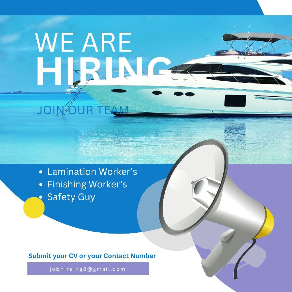 Boat Factory in Mussafah Industrial Area M17, Abu Dhabi Hiring Now Description Alphaboats Factory (located in Mussafah Industrial Area, Abu Dhabi) is looking for 3 skilled workers to join our boat manufacturing team 2 Finishing Worker's 1 Lamination Worker Requirements Minimum 2 years of experience in boat or fiberglass finishing/ lamination Ready to join immediately Location Mussafah M17