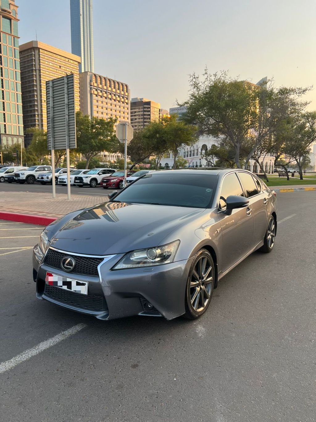Lexus GS F 350, 2014 model, GCC specs, 6 cylinders, 8-speed transmission, accident-free, 3 panels painted, mileage 370,000 km, price 39,000 AED negotiable after inspection. Contact for details.