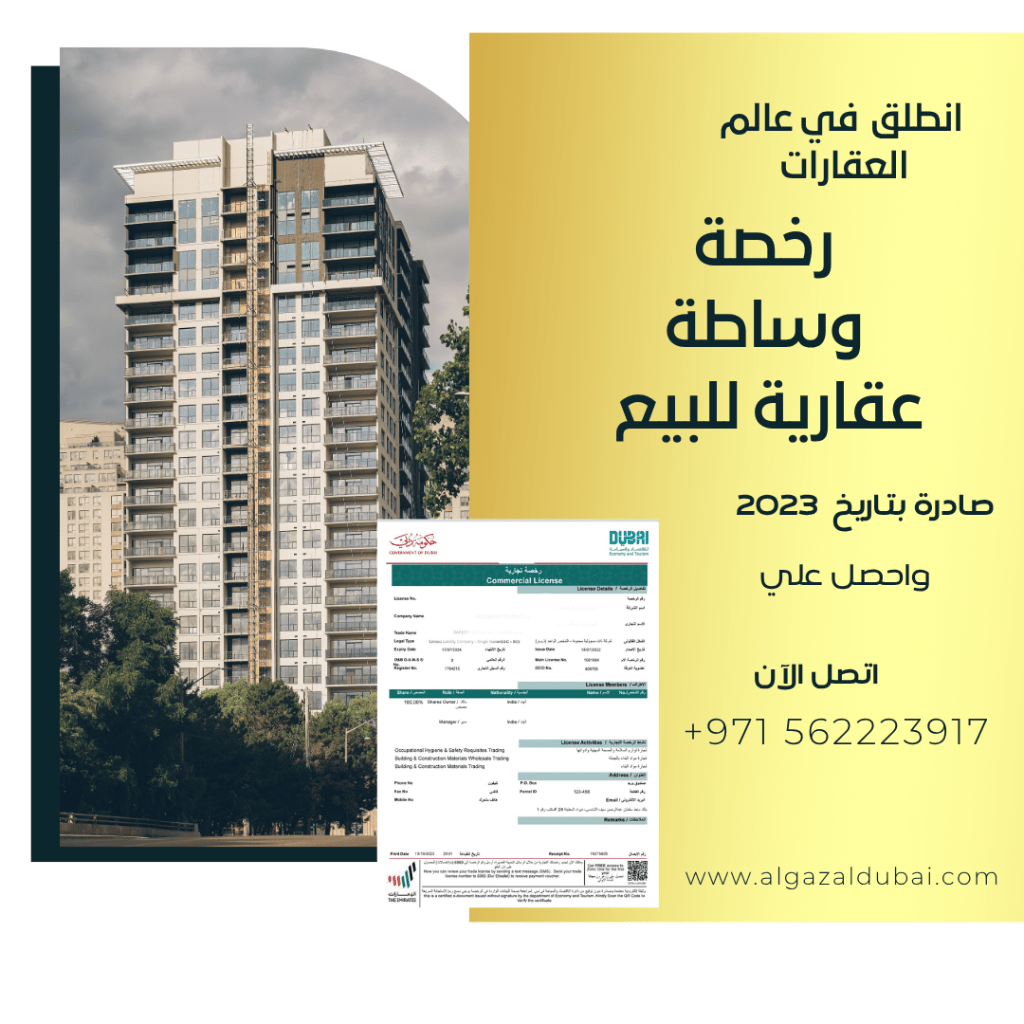 رخصة عقارات للبيع شاملة جميع الأوراق (حساب بنكي - تسجيل ضريبي) مسجلة عند المطورين