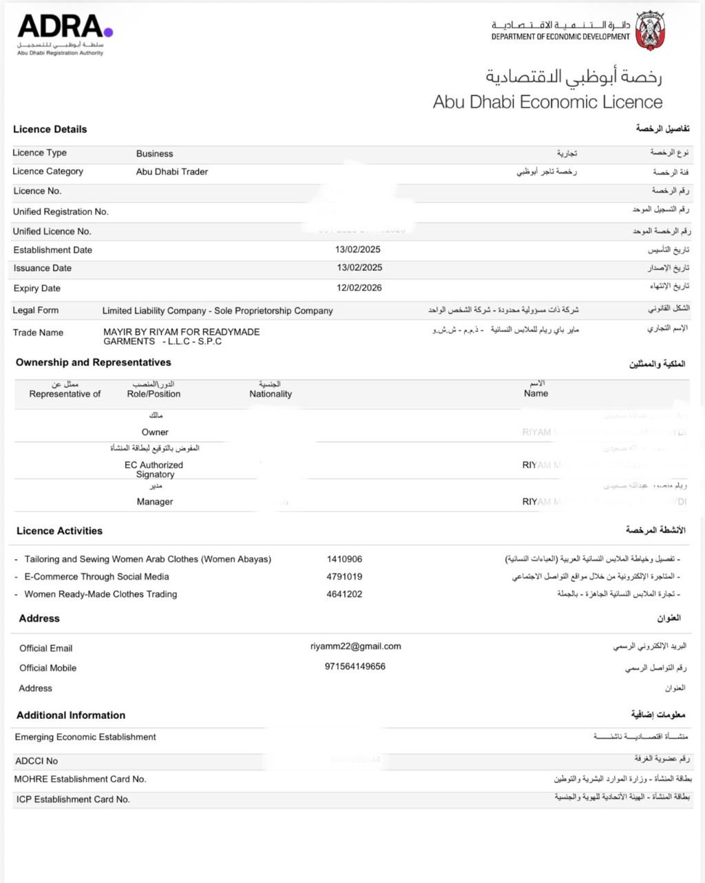 Commercial License for sale in Abu Dhabi Limited Liable Company Valid commercial license available for sale. Price AED3500 (Negotiable) Suitable for various business activities. Serious buyers only. Contact