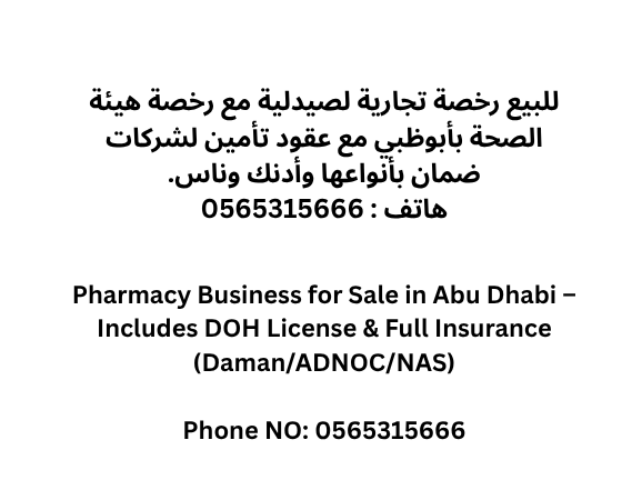 Pharmacy Business License for sale in Abu Dhabi - Includes DOH License & Full Insurance (Daman/ ADNOC/ NAS)