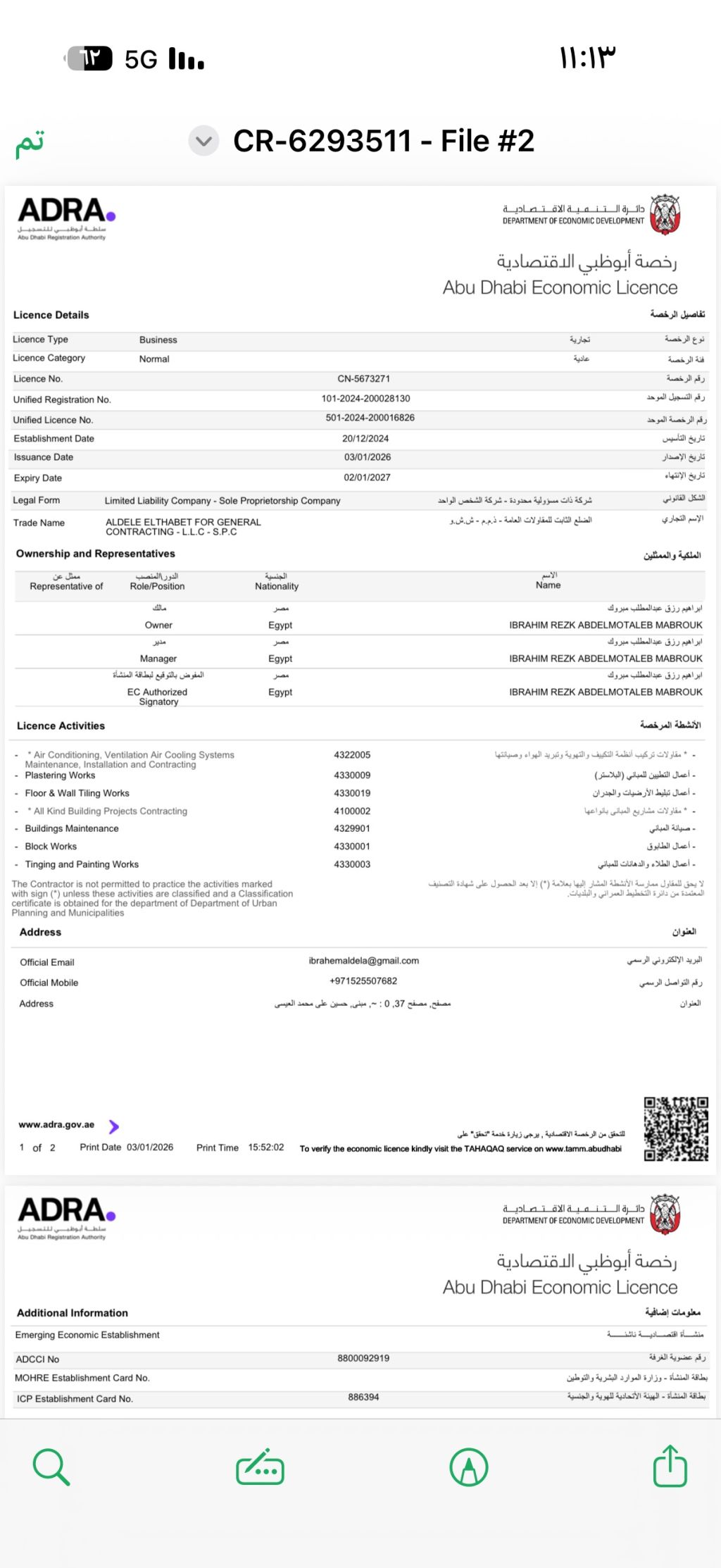 للبيع رخصة شركة مقاولات وصيانة عامة رخصة جديدة سارية الى 2027 / 2 لا يوجد على الشركة أي مخالفات مسجله في ضريبة الشركات وضريبة القيمة المضافة عمر الشركة عام ونصف يوجد حساب بنكي فعال
