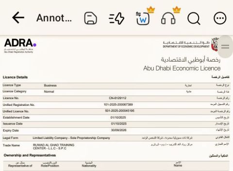 اعلان بيع رخصة تجارية للبيع رخصة تجارية صادرة من دائرة التنمية الاقتصادية نوع الرخصة مركز تدريب الرخصة تشمل عدة أنشطة معتمدة مرفق معها رخصة Activiat من وزارة التربية والتعليم التراخيص تتيح لك ممارسة الأنشطة التعليمية والتدريبية بشكل نظامي مناسبة للاستثمار الفوري دون الحاجة لاجراءات اصدار جديدة