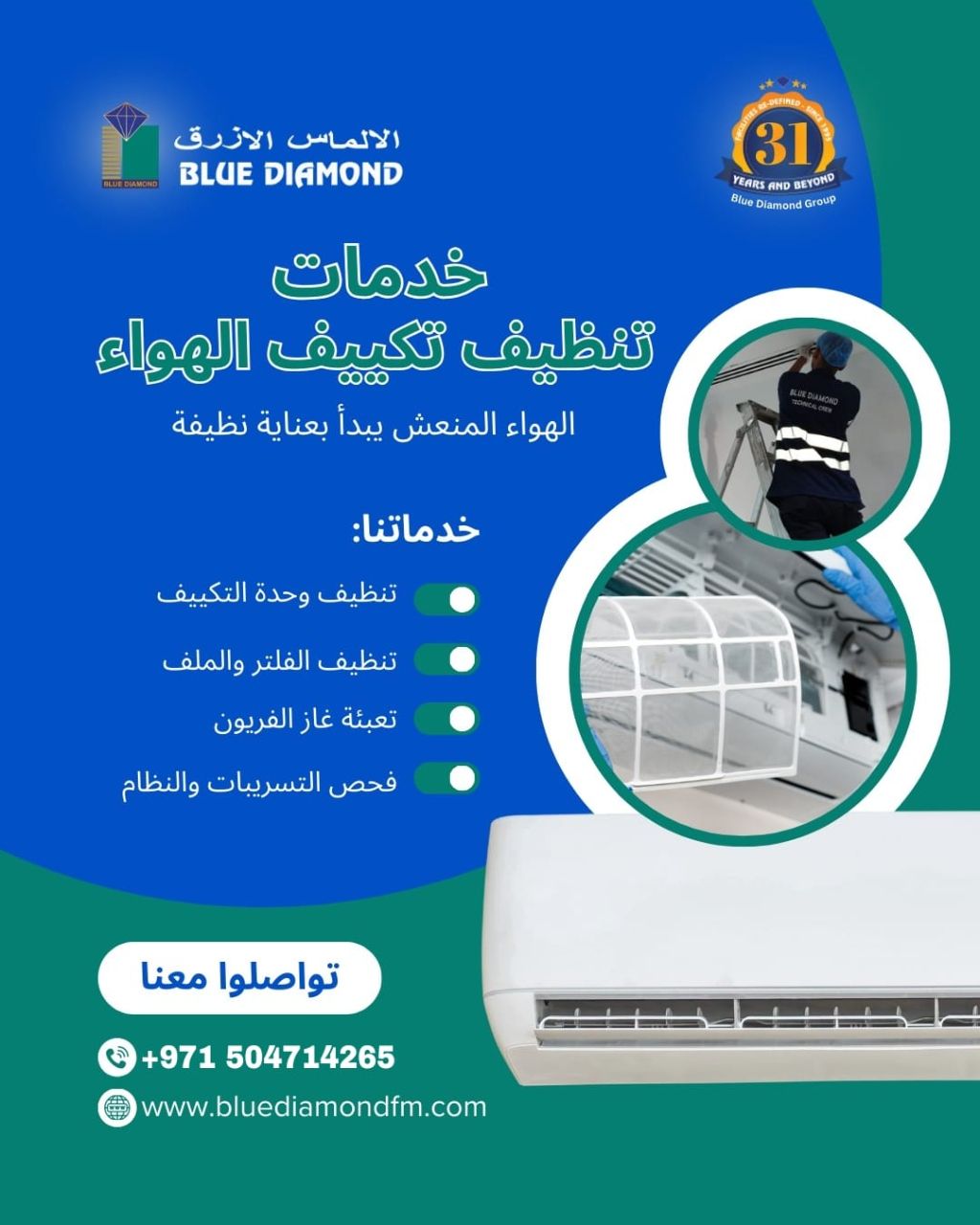 الهواء النظيف يبدأ من مكيف نظيف مع الالماس الأزرق نوفر لك خدمة تنظيف وصيانة التكييف باحترافية عالية على شان تستمتع بهواء نقي، وأداء أفضل واستهلاك أقل للكهرباء تنظيف وحدات التكييف تنظيف الفلاتر والملفات تعبئة غاز المجانيون فحص التسريبات والنظام بالكامل