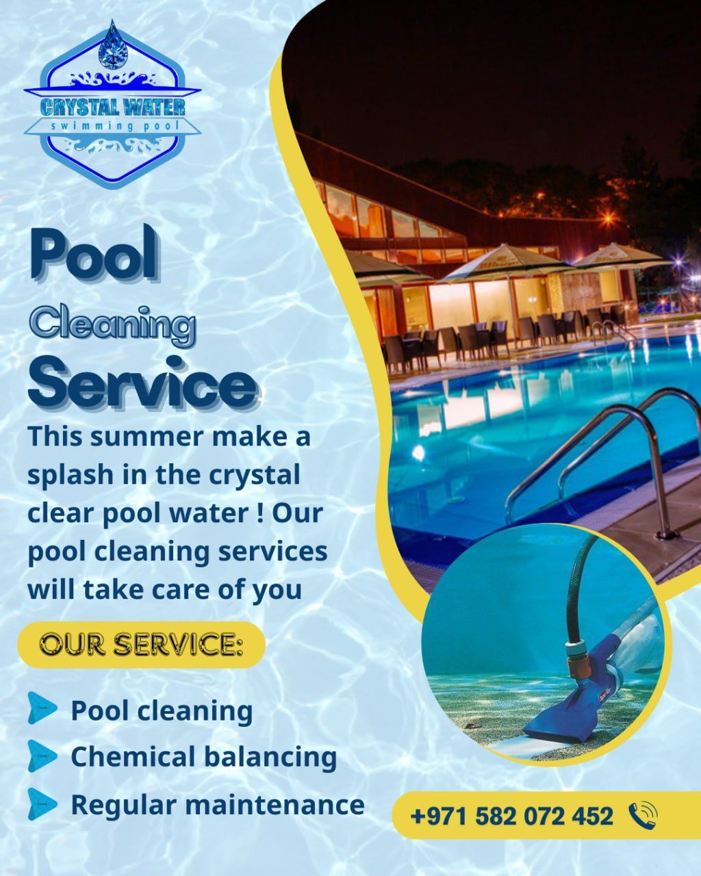 Swimming Pool Construction & Maintenance Company We specialize in all types of swimming pool services Pool Construction & Installation Regular Maintenance & Renovation Cleaning Contracts at the Best Prices Supply of Pool Materials & Equipment Available 24/ 7 Handled by the most skilled technicians across the country Call or WhatsApp us now for a free inspection