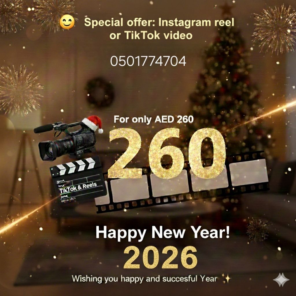 ب 260 درهم تصوير فيديو تيكتوك أو reel انستجرام مع المونتاج وال voice over باللهجة الاماراتية بمناسبة حلول سنة 2026 وكل عام وأنتم بخير