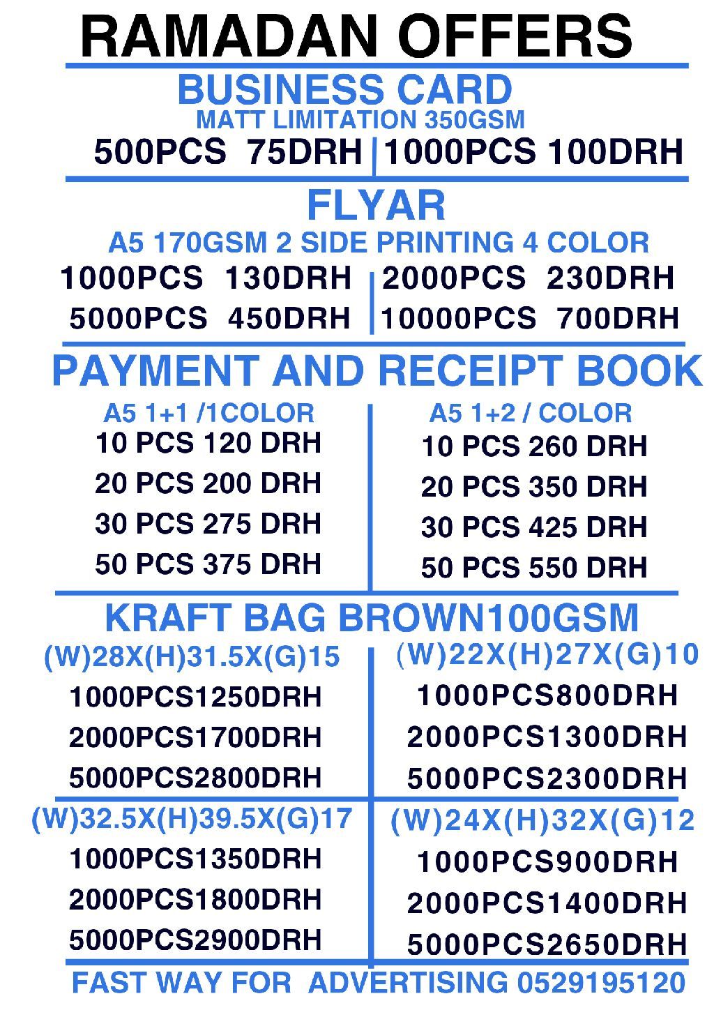 عروض خاصة على كافة المطبوعات 1000 بزنس كارد 100 درهم