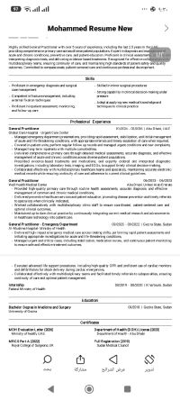 طبيب عام. عملت. في مستشفى غلوبال أبوظبي قسم الطوارئ. والجراحة. وبعض المراكز الخاصة. خبرة أكثر من 4 سنوات في المجال الطبي. ابحث عن دوام مناسب. أحمل ترخيص أبوظبي
