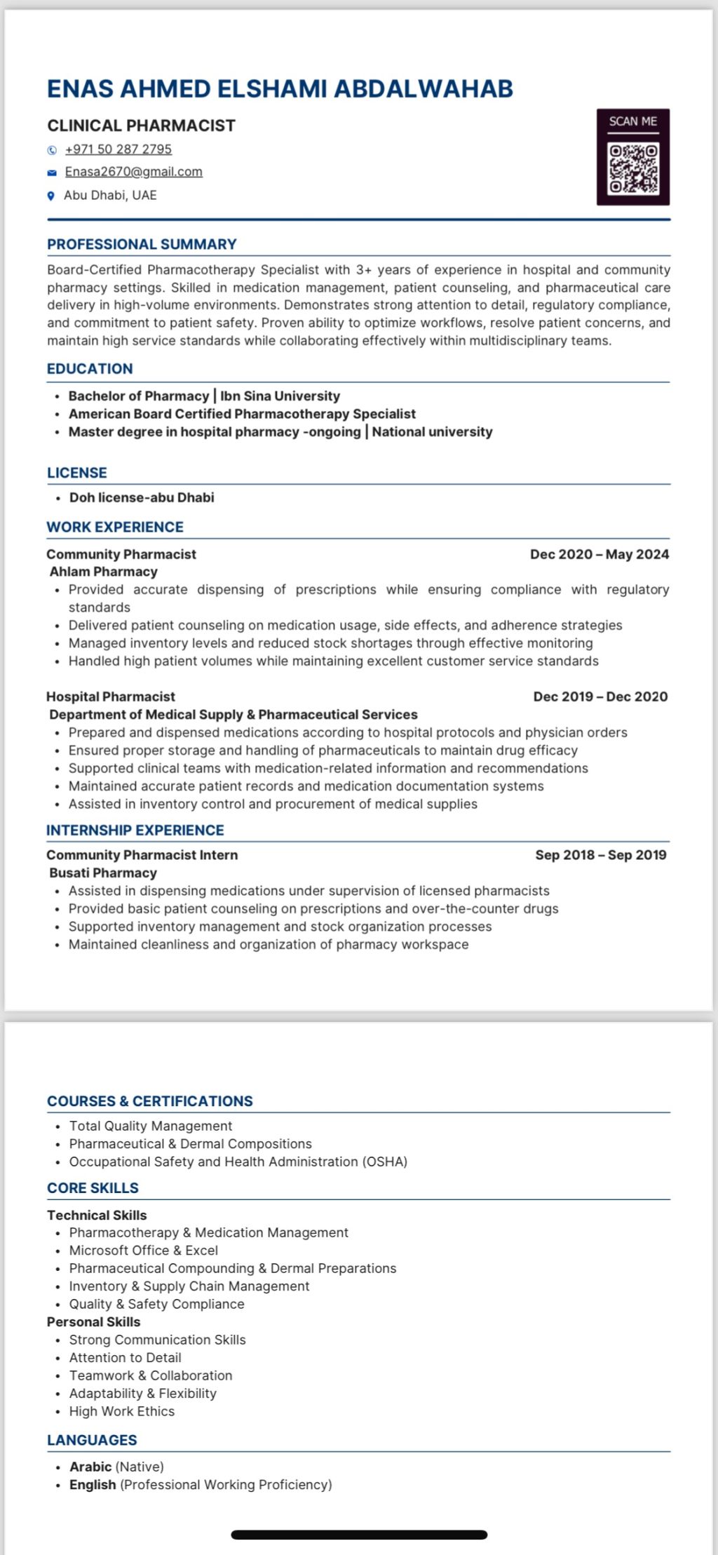أيناس أحمد الشامي / سودانية / خريج صيدلة / مقيمة في أبوظبي / لدي خبرة 4 سنين في الصيدلة / حاصلة على شهادة البورد الأمريكي