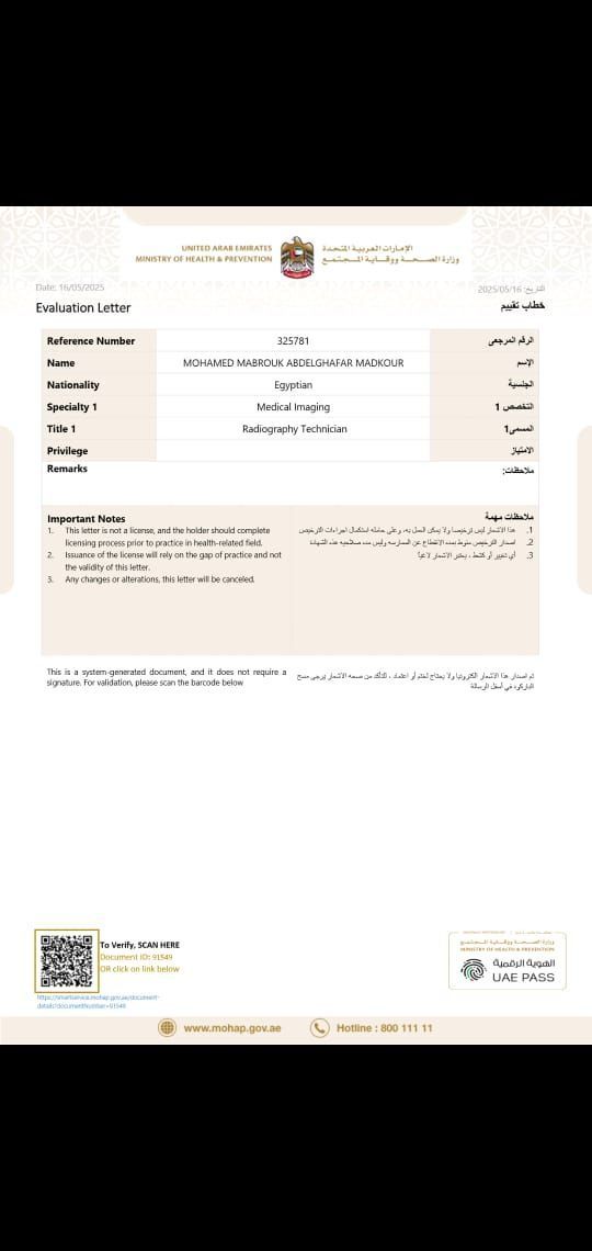 Experienced Radiography Technologist with passion for providing excellent patient care. Skilled at performing diagnostic X rays, CT scans and MRIs. Strong knowledge of radiation protection and safety standards. Knowledgeable Healthcare professional with significant background in radiology positions. I have MOH license I deal with a variety of programs including General X rays & contrast examinations