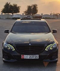 For sale: Mercedes E300 2014 model, imported from Korea with Gulf specifications. Full options, driven 156,000 km. Includes one year insurance and 8 months ownership. Black edition car, very clean inside and out, needs no additional expenses. Full LED lighting, xenon, keyless entry, fingerprint start, gear shifts, heated front and rear seats and steering wheel. Features fuel saving system, auto system, rear camera, and collision avoidance system. All consumable parts have been replaced. Car location: Abu Dhabi.