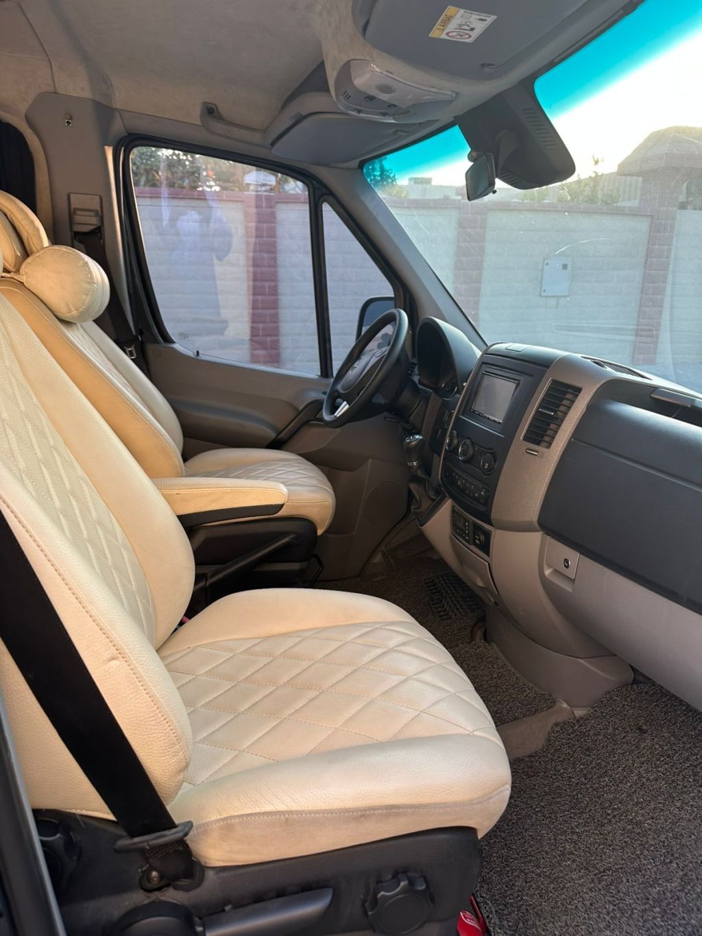 Mercedes Sprinter, 2017 model, 12-passenger van, black exterior with beige interior, 6-cylinder, diesel, automatic transmission, excellent condition, 38,000 km mileage, asking price 119,000 AED (location: Sharjah - Al Azra), negotiable for serious buyers after inspection. Contact for details.