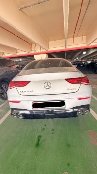Mercedes CLA250 with 2.0L turbo engine producing 221 horsepower - 4MATIC all-wheel drive system - 8-speed automatic transmission - dual MBUX screens - luxurious beige leather seats - ambient interior lighting - panoramic sunroof - camera and sensors - integrated safety systems - catalog available