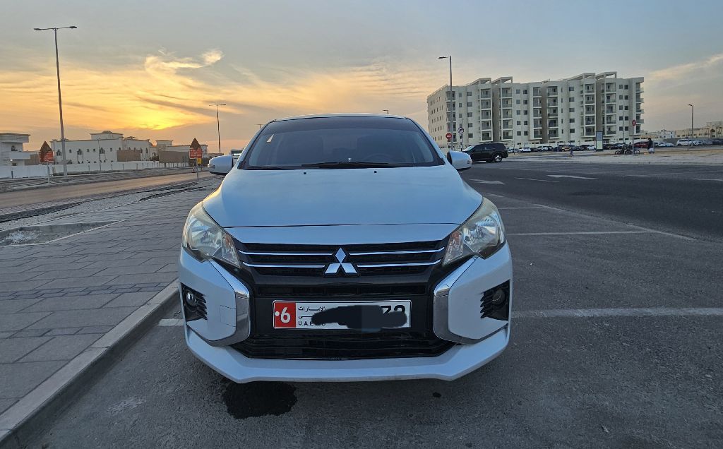 Mitsubishi Attrage 2021 model, GCC specs, excellent condition. Mileage: 107,000 km. Excellent condition with rear camera screen. One-year ownership. Price: 21,000 AED.