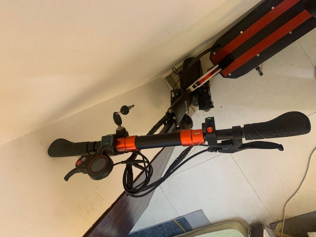 سكوتر كهربائي قابل للطي باللونين الأسود والأحمر ويحتوي على مقعد قابل للازالة. يتميز بمحرك قوي 1500 واط ويعمل ببطارية 48 فولت. تصل سرعته القصوى الى 55 كم/ ساعة. يأتي مع نظام تعليق كامل واطارات هوائية مقاس 10 بوصات لتجربة قيادة مريحة. يشمل غالبا مصابيح LED أمامية وشاشة رقمية