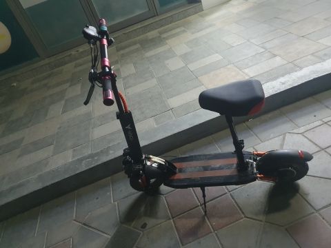 سكوتر كهربائي قابل للطي باللونين الأسود والأحمر ويحتوي على مقعد قابل للازالة. يتميز بمحرك قوي 1500 واط ويعمل ببطارية 48 فولت. تصل سرعته القصوى الى 55 كم/ ساعة. يأتي مع نظام تعليق كامل واطارات هوائية مقاس 10 بوصات لتجربة قيادة مريحة. يشمل غالبا مصابيح LED أمامية وشاشة رقمية