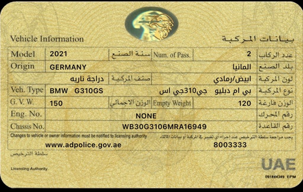 For sale BMW 310 cc motorcycle, 2021 model, imported, clean, first owner. asking price AED14000 (negotiable) Fuel efficient and very practical