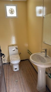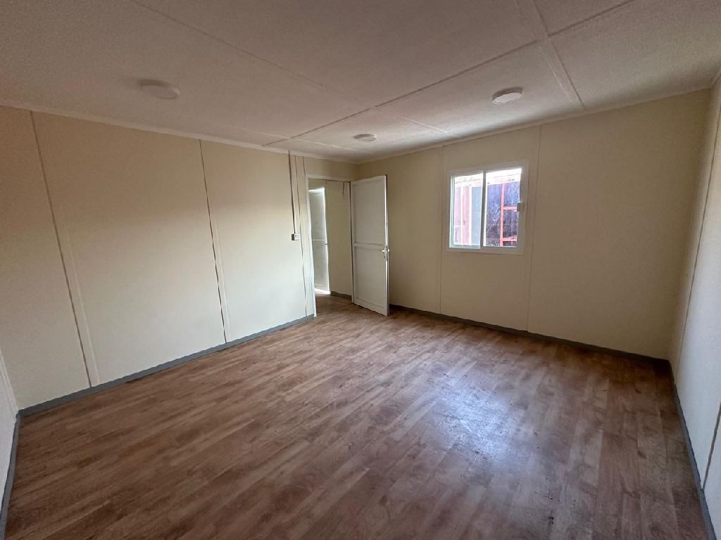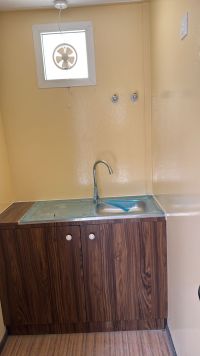 12 meters x 3.60 meters) A nearly new fire - resistant mobile cabin Two office rooms One toilet with a toilet and sink One kitchen with a sink