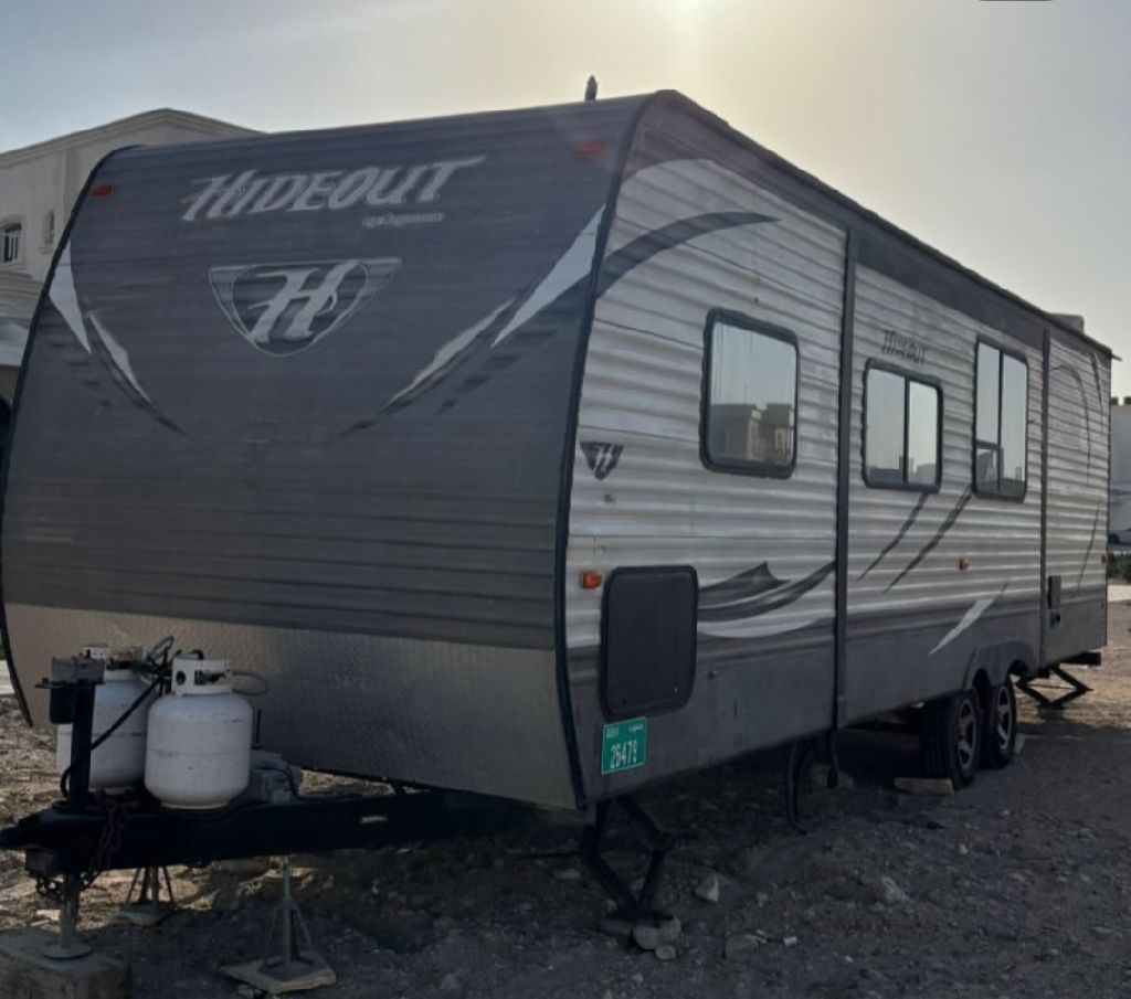 Keystone Company, 32 feet long, 2015 model, aluminum specifications, separate bedroom, living room with large extension, rear bed, 4 American air conditioners, duct, 3 split units, solar power - 200 amp battery fully renewed, no defects, asking price 105000 (negotiable) Contact number Caravan rental - American, Abu Dhabi, Emirates sessions, luxury caravans - trend, the most beautiful - winter