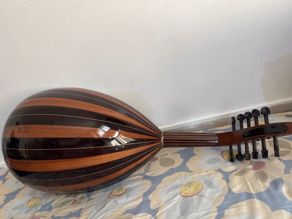 عود شرقي فاخر صناعة يدوية، صوت دافئ ورنان، توازن ممتاز بين القرار والجواب، مناسب للمبتدئين والمحترفين، تشطيب أنيق وضبط دقيق للأوتار