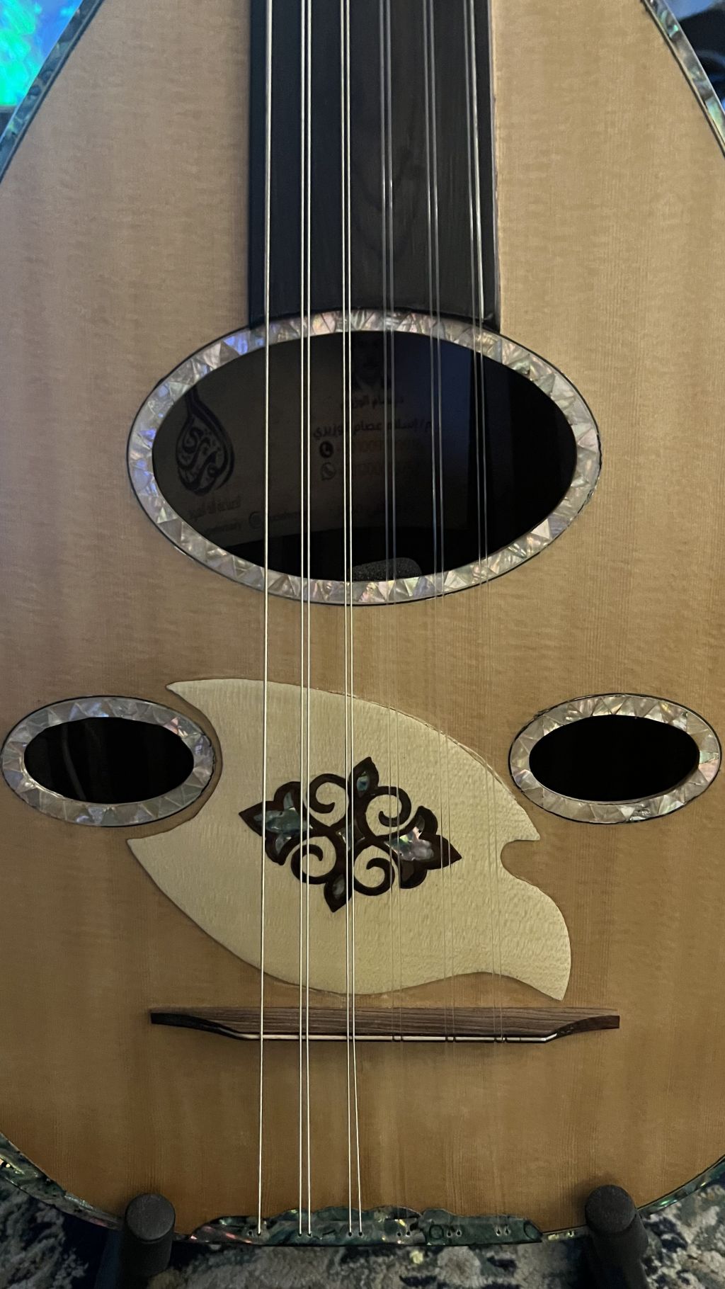 خشب جوز وورد وسيسم وجه سيدار مفاتيح أبانوس زند 19.5 فرسة متحركة أوتار لا بيلا أميركي فا فا إيكيولايزر مايكروفون صوت لسماع صوت العود التواصل واتساب على الرقم