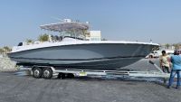 للبيع قارب السويدي مارين 34 قدم موديل 2022 مكينتين مير كوري 300V8 800 ساعة سر فرات كلها عند دلما مارين. محيا للسمك الحي حمام وشاور شاشتين ريمارين 12 inch مطلوب 370