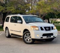 Nissan Armada 4x4, white color, 2013 model, GCC specifications, number 1, all options, excellent condition, directly from owner. Price: 23,000 AED
