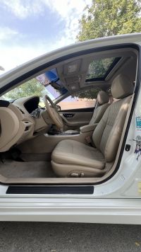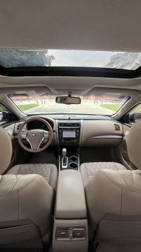 For sale: Nissan Altima, GCC specifications, 2014 model, SL trim, fully equipped. Exterior color white, interior beige. Mileage 192,000 km. Features: sunroof, cruise control, remote start, rear camera, fog lights, alloy wheels, rear AC, large screen, navigation, front and rear sensors, USB/MP3, keyless entry, fingerprint system, new tires, new battery, one-year ownership. Price 21,500 AED. Contact for details.