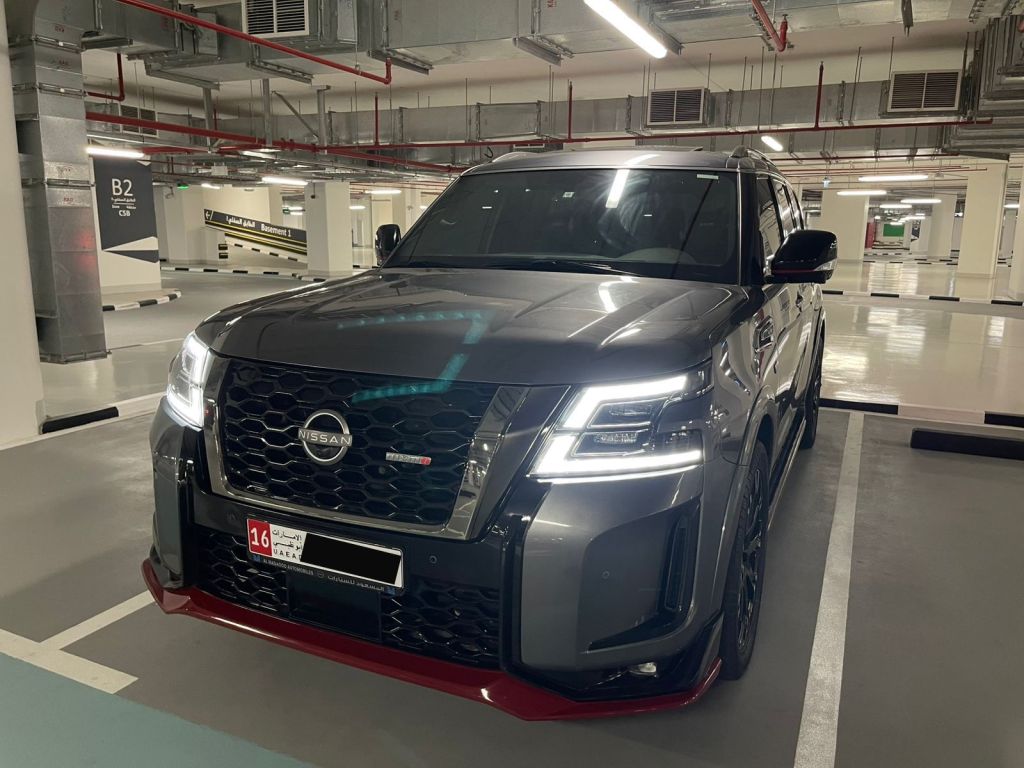 For sale: Nissan Patrol eight-cylinder with large engine, model 2018. Nismo 2024 conversion, original conversion. Five cameras, sunroof, air conditioning, and heated seats. All seats are electric with remote start. Starry sky roof, Kantara mirrors, electric tailgate, original conversion. Full service history, complete interior and exterior conversion with screens, speakers, seats, and everything. Only 149,000 kilometers driven. Asking price: 119,000 AED. Contact for details.