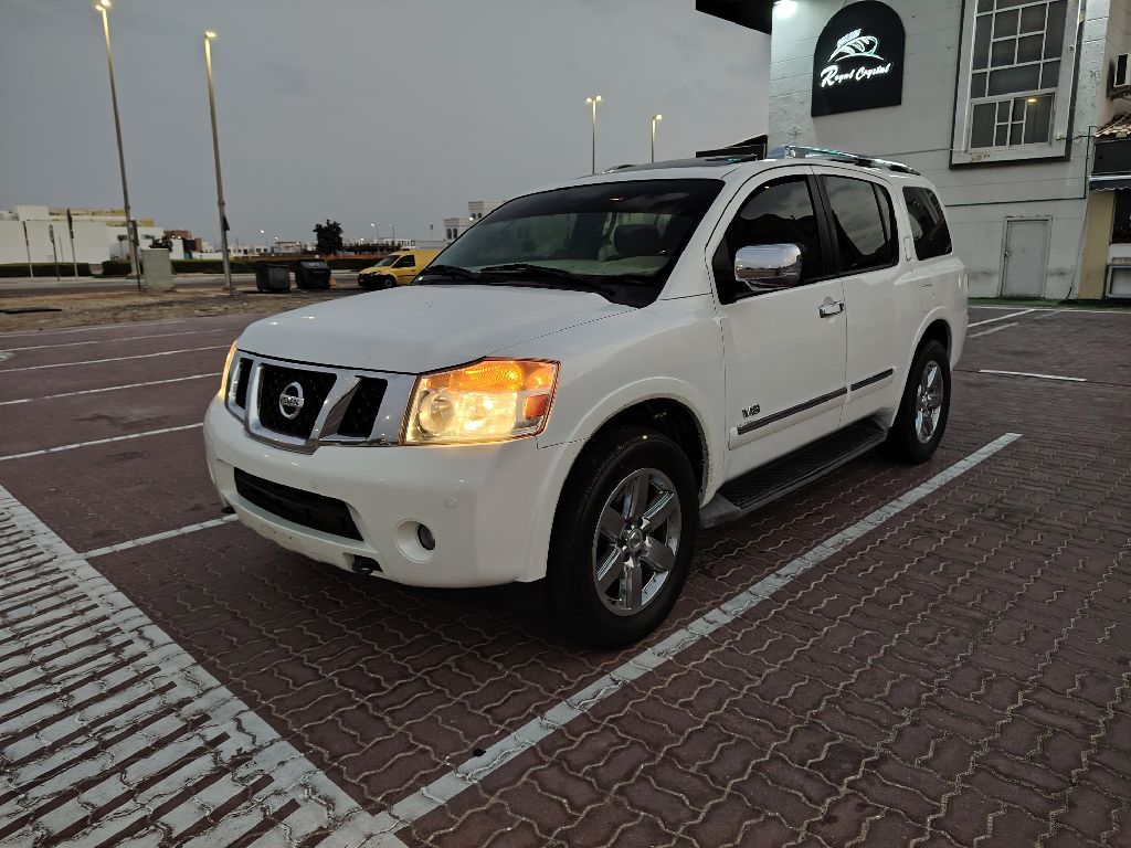 Nissan ARMADA 2014 GCC Spec, mileage 220,000 KM, full options, GCC specs. Keyless entry, keyless start, sunroof, electric seats, large storage space, 7 family seats, original beige leather seats, complete new service, cruise control, steering wheel controls, screen and rear camera, excellent condition, very clean interior, front and rear electric windows, electric mirrors, semi-new tires, gear in good condition, excellent AC, chrome rims.