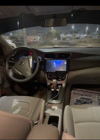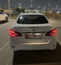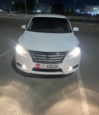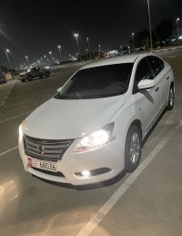Nissan Sentra GCC specs, 1.8L engine, large screen, number one, no sunroof, owned for 10 months, driven 163,000 km, asking price 23,000 AED. Contact for details.