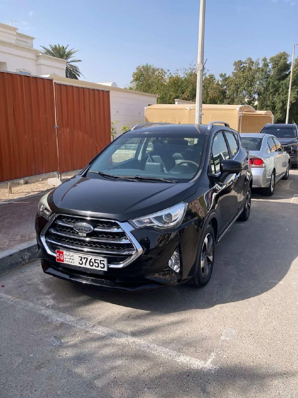 سيارة سوداء استيشن موديل JAC صينية نظيفة جداً ولا يوجد حوادث ولا تزال تحت الضمان. السعر: 30,000 درهم.