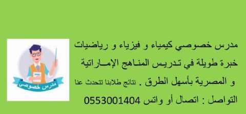 Experienced Math Teacher for Primary and Preparatory Stages - Areas Al Shamkha - Shawamekh - Baniyas - Shakhbout City - Falah - Al Riyadh. Skilled in simplifying Mathematics and improving student performance. Able to teach other subjects as well (Science - English) Regular follow - up + practical exercises + homework support