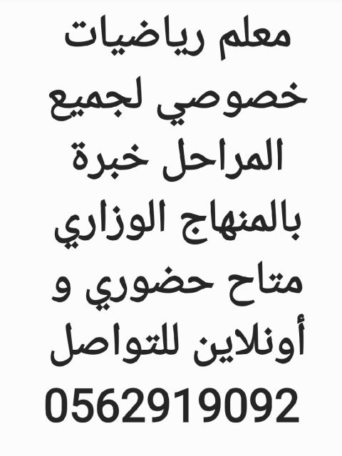 معلم رياضيات دروس خصوصيه ومتابعة مدرسية خبرة في المناهج الوزارية والمناهج الأمريكية تدريس من الصف الأول للصف الثاني عشر