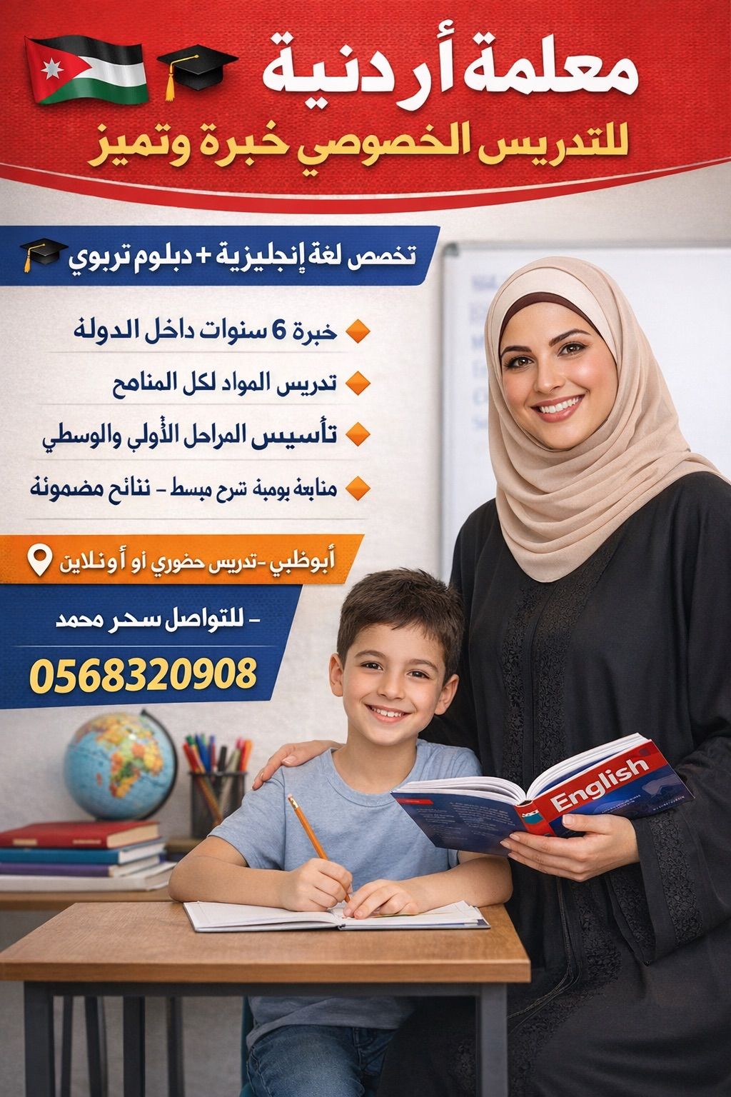 معلمة أردنية تدريس كل المواد تخصص لغة انجليزية مع دبلوم تربوي / تعليم جميع المناهج / تأسيس الطلبه للمراحل الأولى والوسطي / خبرة 6 سنوات بالدولة - نتائج مضمونة