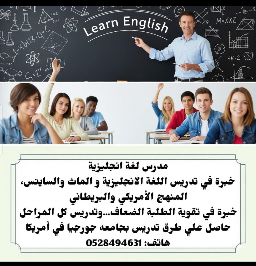 مدرس لغة انجليزية - حاصل علي دورة طرق تدريس في أمريكا - وخبرة في تدريس ة EMSAT امسات وتدريس TOEFL وIELTS, SAT للطلبة والموظفين وتأسيس صحيح للغة الانجليزية وتدريس المناهج الأمريكي والبريطاني والوزاري خبرة في التدريس وعمل البحوث الجامعية