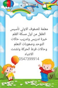 معلمه تأسيس للصفوف الأولى خبرة في حالات صعوبات التعلم والتأخر الدراسي وجلسات تخاطب وتنمية مهارات لحالات التوحد والتأخر اللغوي والاعاقة الذهنية