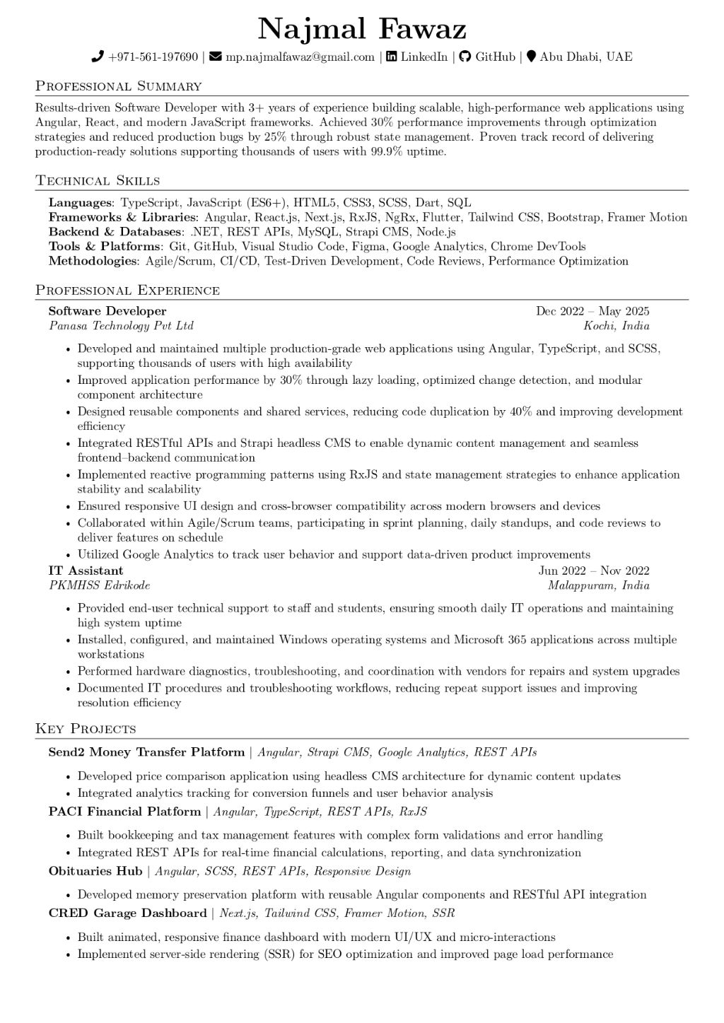 Application Support/ Web Developer (Angular, React) Application Support and Web Developer with 3 + years of professional experience in supporting and developing web - based applications. Skilled in Application support, issue analysis, and bug fixing User support and incident resolution Web development using Angular, React, and Next. js REST API integration and CMS - based systems (Strapi) Windows OS